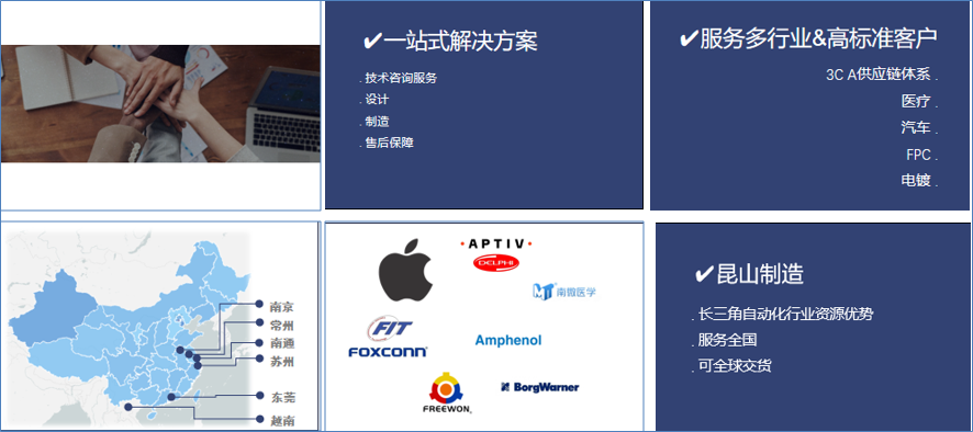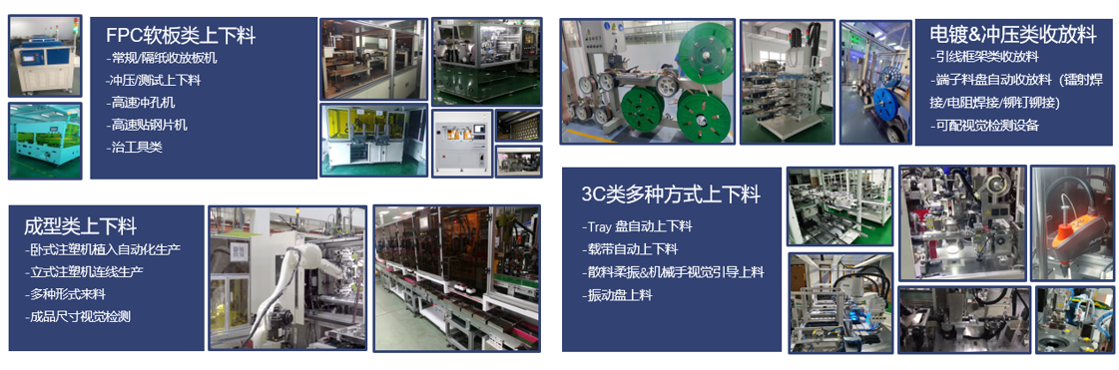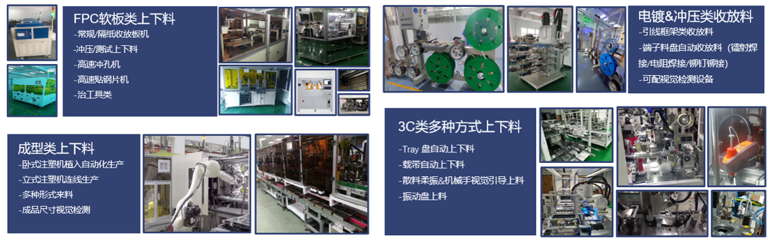 主營高標(biāo)準(zhǔn)非標(biāo)定制設(shè)備,3C、電鍍、沖壓、FPC、成型等多行業(yè)上下料設(shè)備,視覺類軟硬件設(shè)備,并提供相關(guān)技術(shù)支持和整套解決方案。